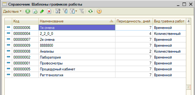 ГРАФИКИ РАБОТЫВ "Рутине" имеет возможность планировать рабочее время бригад медицинских работников, оказывающих услуги. Планирование производится с помощью графиков работ. Построение графика работ начинается с шаблонов график работ, которые устанавливают периодичность трудовых ресурсов для оказания услуг. Шаблоны графиков в "Рутине" могут быть количественным, в котором устанавливается периодичность шаблона в днях и допустимое количество производимых услуг на каждый день. Также шаблоны графиков могут быть временными, в которых устанавливается периодичность шаблона в днях и временные интервалы на каждый день периода. Вторым шагов в построении графиков работы являются последовательности заполнения графиков работы, которые связывают шаблон графика работы и конкретную дату начала использования шаблона. Заполнение собственно графиков работы производится в указанном пользователем интервале с использованием выбранной последовательности и информации о праздничных днях. Любые интервалы графика могут быть отредактированы вручную. |