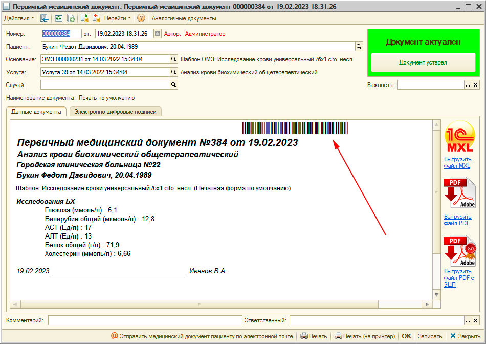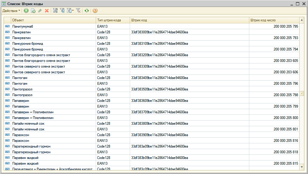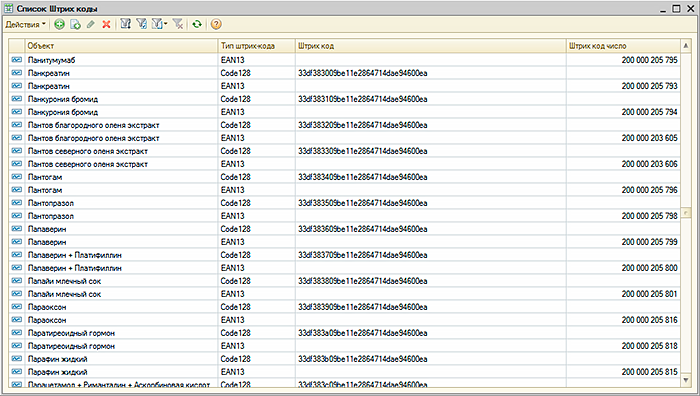 ИСПОЛЬЗОВАНИЕ ШТРИХ - КОДОВДокументам, элементам справочников и некоторым иным объектам в информационной базе КМИС "Рутина" при их создании автоматически присваивается штрих - код. Сведения об объекте и его штрих - кодах хранятся в соответствующем регистре сведений. Каждый объект базы данных имеет, таким образом, 2 два штрих - кода - типов «Code128» и «EAN13». В программе предусмотрен поиск объекта по штрих - коду Штрих - код может вводиться для поиска путем считывания штрих - кода с использованием сканера, либо с клавиатуры. После ввода штрих - кода форма объекта, которому штрих - код соответствует, открывается. Практическое применение системы штрих - кодирования заключается, например, в выводе штрих - кодов в документах "Первичных медицинский документ" в предусмотренном пользователями формате. Вкупе с возможностью поиска объекта информационной базы по штрих - коду такая технология обеспечивает мгновенную идентификацию и доступ к объекту в информационной базе после сканирования штрих - кода на "бумажном" документе. Другое практическое применение штрих - кодирования заключается в том, что штрих - код может быть введен в данные программы медицинского прибора, и впоследствии выгружен в составе файла с данными и использован для идентификации пациента или связанного с пациентом объекта в информационной базе. |