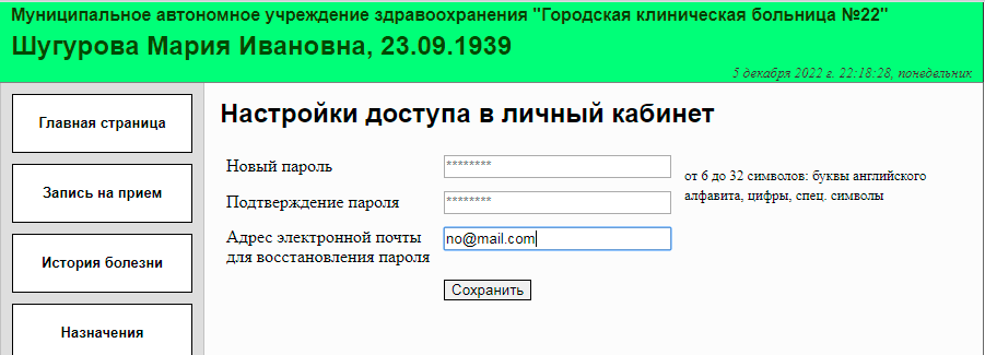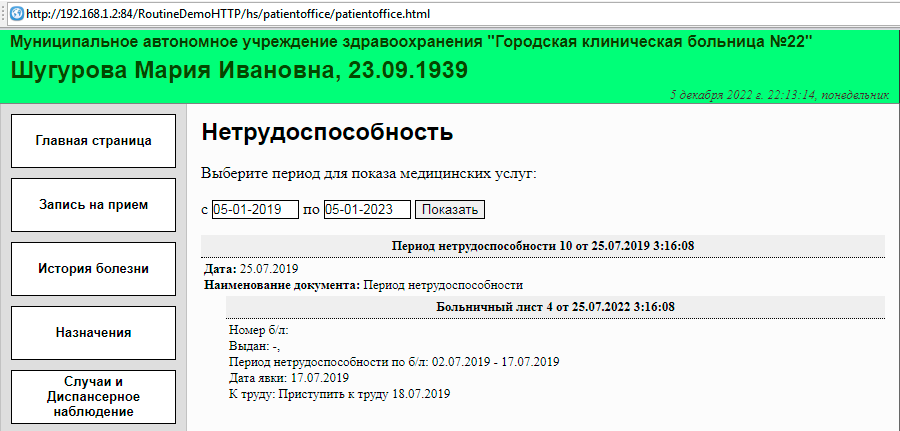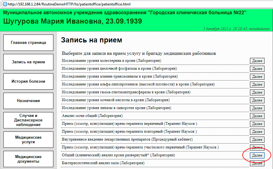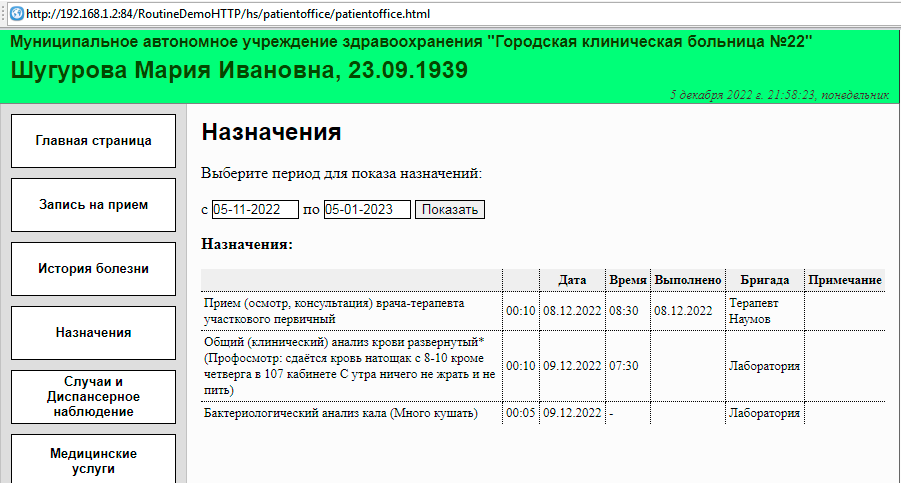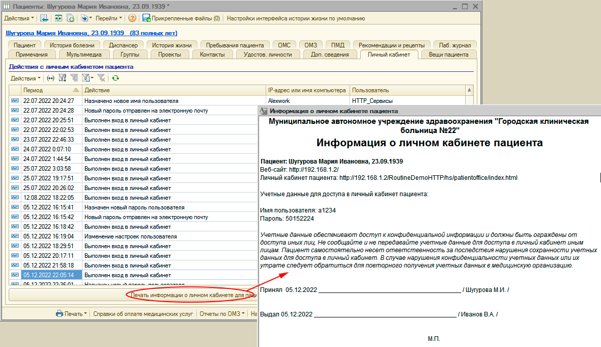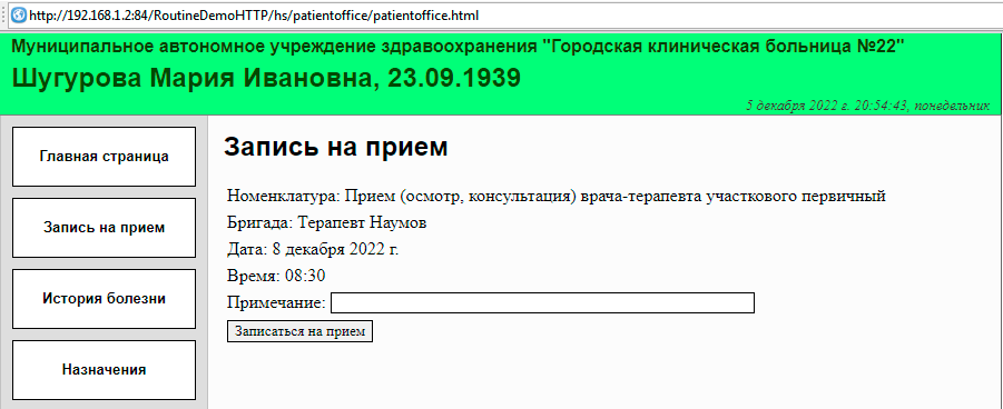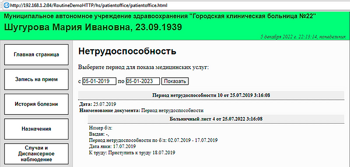 ЛИЧНЫЙ КАБИНЕТ ПАЦИЕНТАВ "Рутине" для удаленного взаимодействия между медицинской организацией и пациентами имеется возможность использования механизма "Личный кабинет пациента". Личный кабинет пациента представляет из себя отдельный веб-сайт, который в свою очередь, может быть интегрирован с веб-сайтом медицинской организации. На главной странице личного кабинета пациента пациент получает сводную информацию о себе. В разделе "Запись на прием" пациент может записаться на прием или создать себе назначение медицинской услуги. Выбрав медицинскую услугу пациент может выбрать дату и время для ее оказания и записаться на прием (или оказание услуги). В разделе "История болезни" пациент может просмотреть перечень историй болезни за выбранный период и скачать любую из историй болезни в формате PDF. В разделе "Назначения" пациент видит свои назначения медицинских услуг за выбранный период. В разделе "Медицинские услуги" пациенту предоставляется информация о медицинских услугах, оказанных медицинской организацией, за выбранный период. В разделе "Медицинские документы" пользователь видит перечень своих первичных медицинских документов, каждый из которых может просмотреть или скачать. В разделе "Нетрудоспособность" пациенту предоставляется информация о периодах нетрудоспособности и больничных листах за выбранный период времени. В разделе "Взаиморасчеты" пациенту предоставляется информация о взаиморасчетах между пациентом и медицинской организацией за весь период оказания услуг и поступления от пациента платежей. В разделе "Настройки доступа" пациент может изменить пароль для доступа в личный кабинет пользователя и установить адрес электронной почты для восстановления пароля к личному кабинету пользователя. Верификация личности пациента и первичное предоставление пациенту учетных данных для доступа в личный кабинет пациента производится при личном присутствии пациента под роспись пациента. |